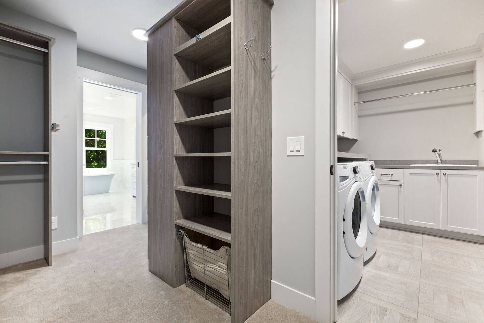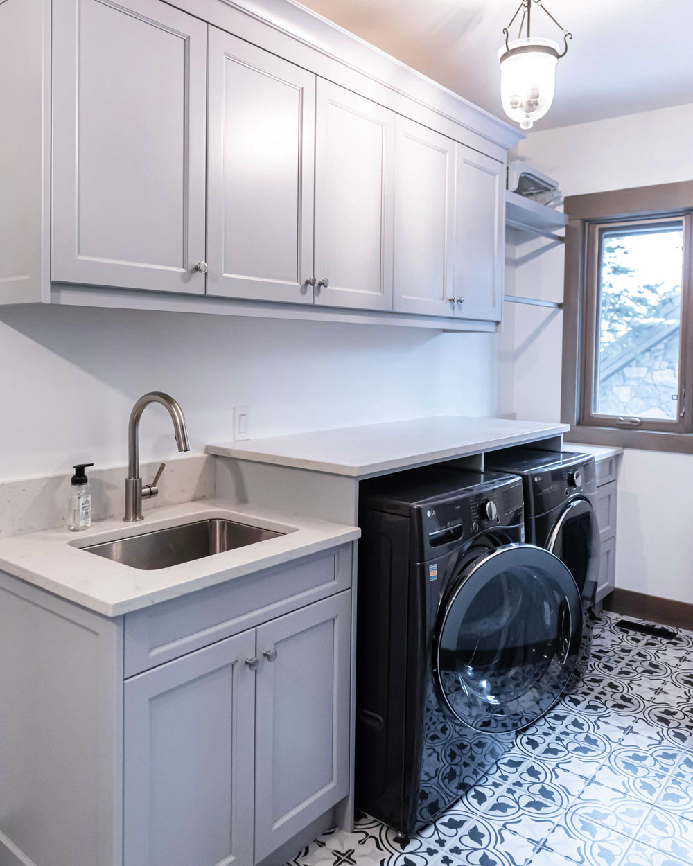 Our designers will work with you to choose the materials, finishes, and features that suit your vision. Whether you need extra shelving for detergents or want specialized spaces for hampers and baskets, we’ve got you covered.