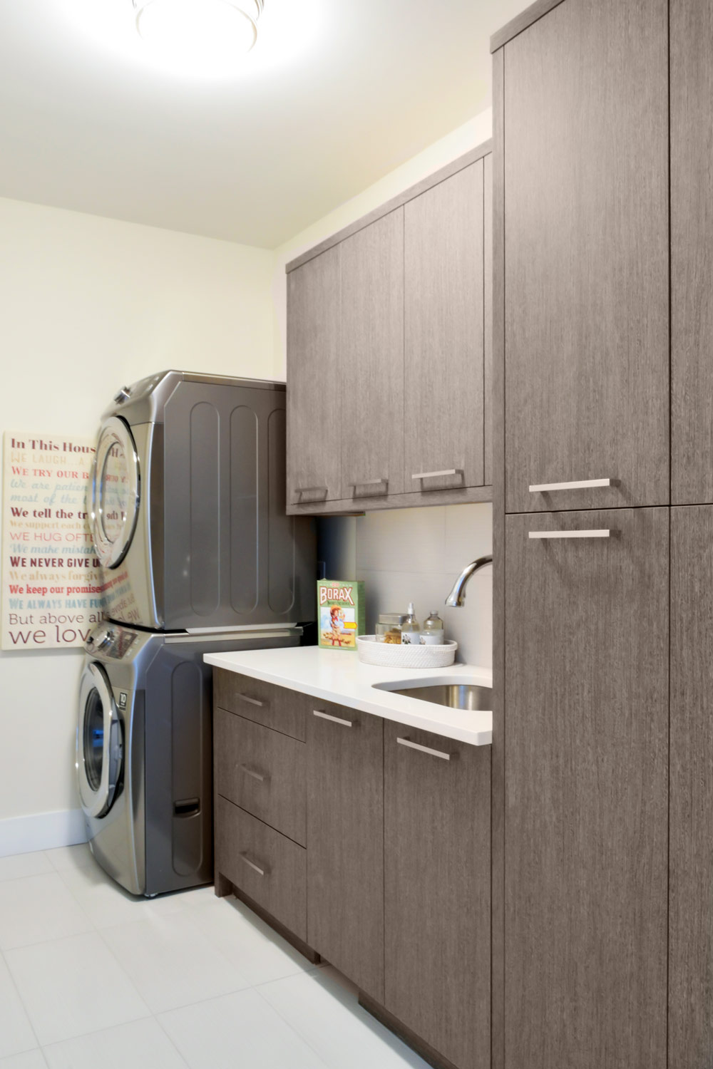 Zen Living’s custom laundry room cabinets come in various styles and finishes. Whether you prefer a classic look or a more contemporary design, we offer options that suit your taste.