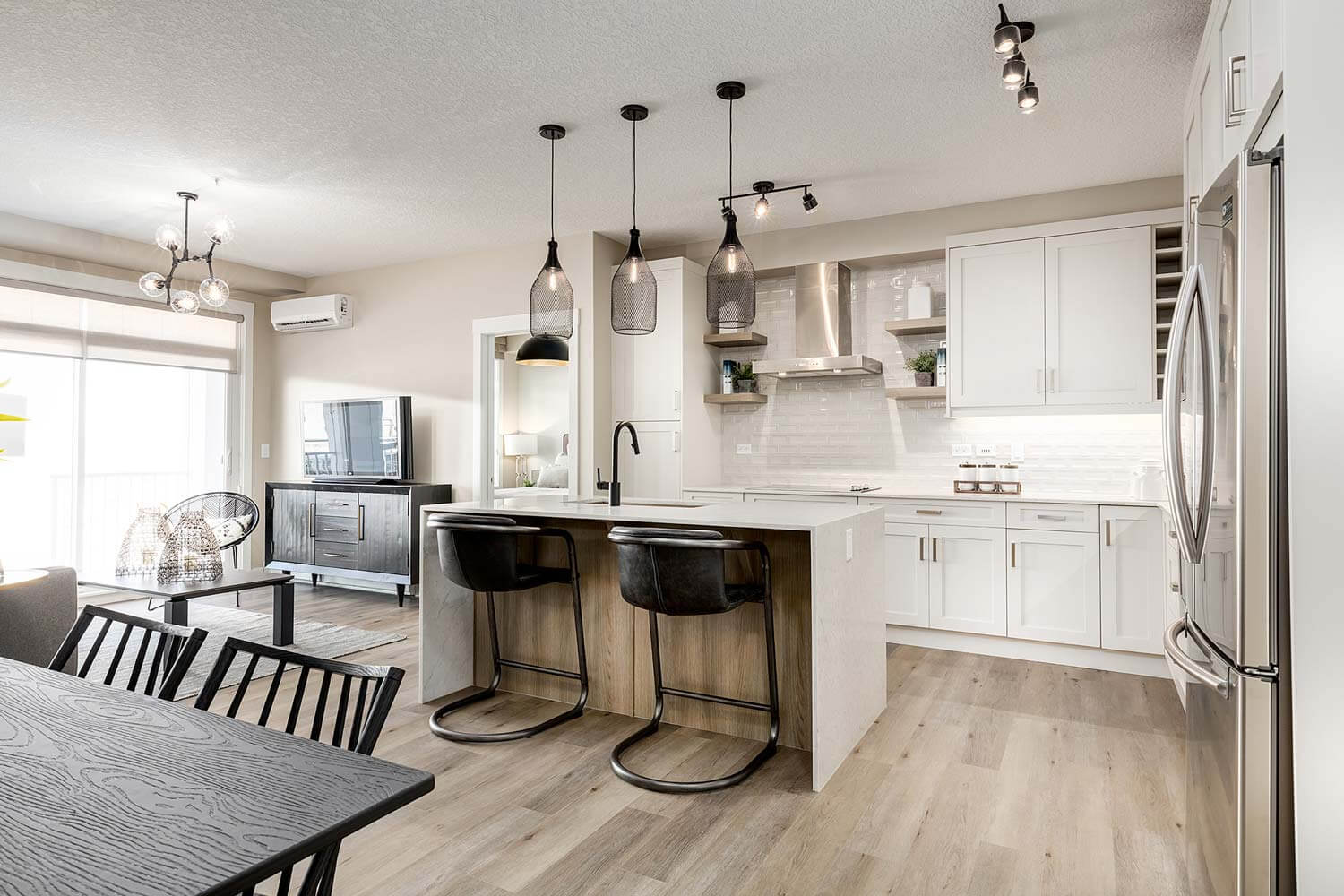 Our transitional cabinets in Calgary are designed to maximize storage space. From pull-out shelves to built-in organizers, we offer innovative solutions to keep your kitchen tidy and organized.